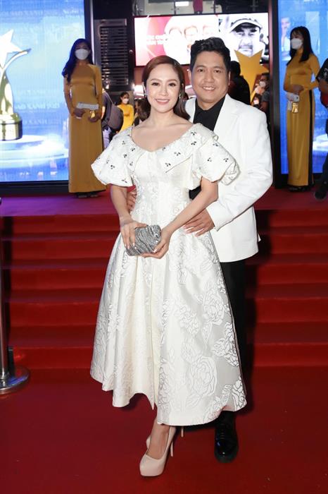 Khác với các nghệ sĩ trẻ cùng phong cách hiện đại gây nhiều chú ý, vợ chồng Thanh Thuý – Đức Thịnh vẫn dành cho nhau những cử chỉ tính tứ rất cổ điển, nhưng cũng rất ngọt ngào. Dù đã là mẹ của hai cậu con trai kháu khỉnh, sắp chạm ngưỡng tuổi 40, Thanh Thuý vẫn giữ được vóc dáng khá chuẩn và tự tin diện bộ váy trắng thanh tao nhưng không kém phần sang trọng từ nhà thiết kế Nguyễn Phúc Tuấn.