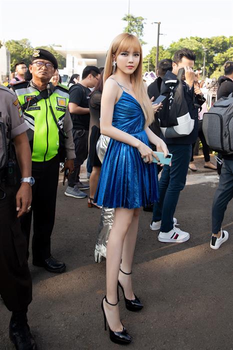 Xuất hiện trên thảm đỏ, nữ ca sĩ nhanh chóng thu hút mọi ống kính của nhiếp ảnh gia nước bạn khi khoe dáng nuột nà, gợi cảm trong chiếc váy xanh cobalt – gam màu ‘hot hit’ của năm 2020. Được biết, đây là một thiết kế của thương hiệu Saint Laurent có mức giá dễ “gây choáng” – 3,190$ - hơn 70 triệu đồng. Để tạo ra tổng thể phù hợp, nữ ca sĩ cũng đồng thời mix hoa tai dáng dài hoạ tiết ngôi sao lấp lánh có giá là 590$ - gần 13 triệu đồng.