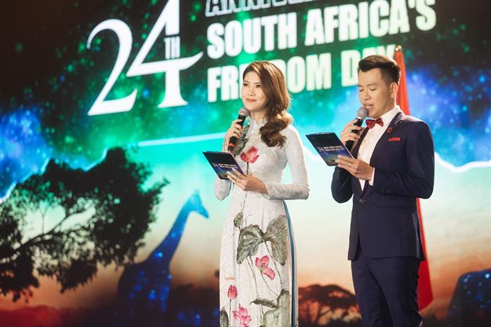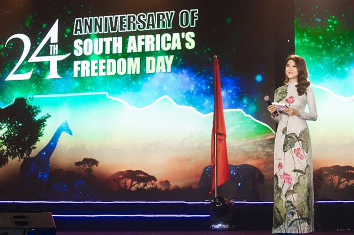 Tintuc - Mới đây, siêu mẫu Thu Hằng đã nhận lời đảm nhận vai trò MC cùng nam ca sĩ Hồ Trung Dũng trong sự kiện kỷ niệm 24 năm Quốc khánh Cộng hòa Nam Phi được tổ chức rất long trọng tại TP.HCM.