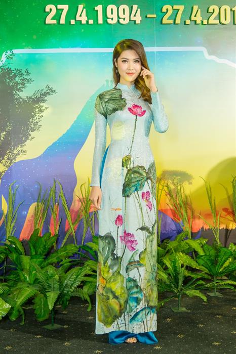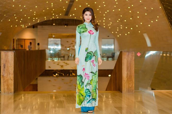 Có mặt tại sự kiện từ rất sớm Thu Hằng cẩn thận xem và trao đổi kịch bản cùng người bạn đồng hành của mình. Nữ siêu mẫu chọn bộ áo dài truyền thống của NTK Liên Hương, bộ trang phục vừa làm toát lên vẻ dịu dàng của cô vừa giúp cô khoe thân hình đồng hồ cát thon gọn.