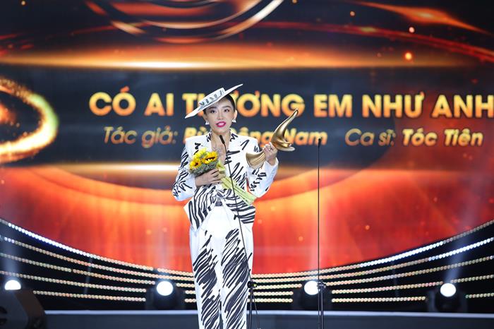 Đêm trao giải là sự giao thoa âm nhạc giữa những thế hệ nghệ sĩ gạo cội của làng nhạc Việt với những hạt nhân trẻ tiềm năng. Xuất hiện tại lễ trao giải năm nay, Tóc Tiên gây ấn tượng với “nguyên cây” trang phục đến từ nhà mốt Moschino. Với phong cách menswear cá tính, Tóc Tiên khiến mọi người thích thú với hình ảnh mạnh mẽ, phá cách nhưng vẫn vô cùng tinh tế.