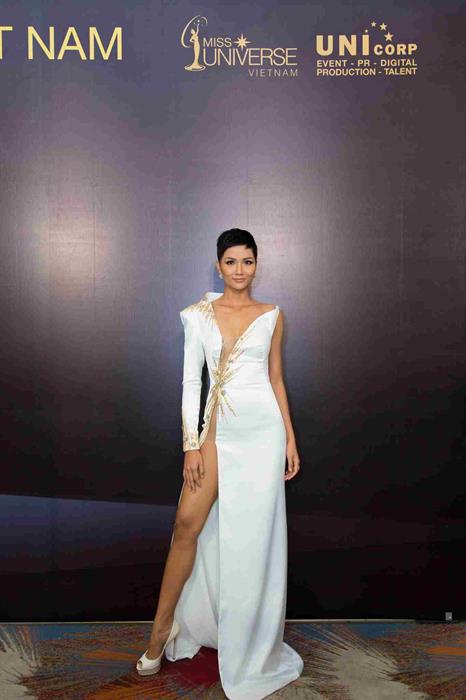 Hoa hậu H’Hen Niê gây bất ngờ cho khán giả với mái tóc ngắn mới đầy cá tính. Người đẹp diện trang phục trắng gợi cảm của nhà thiết kế Đỗ Long với những đường khoét sâu táo báo nhưng vô cùng tinh tế. Trước đó, Hoa hậu H’Hen Niê đột ngột bị bệnh và phải nhập viên. Dù vậy, cô vẫn đến tham gia sự kiện sau khi sức khỏe có phần hồi phục, tuy thần sắc vẫn chưa đươc tươi tắn nhưng người đẹp vẫn khiến khán giả bất ngờ vì thần thái và sự chuyên nghiệp của mình.