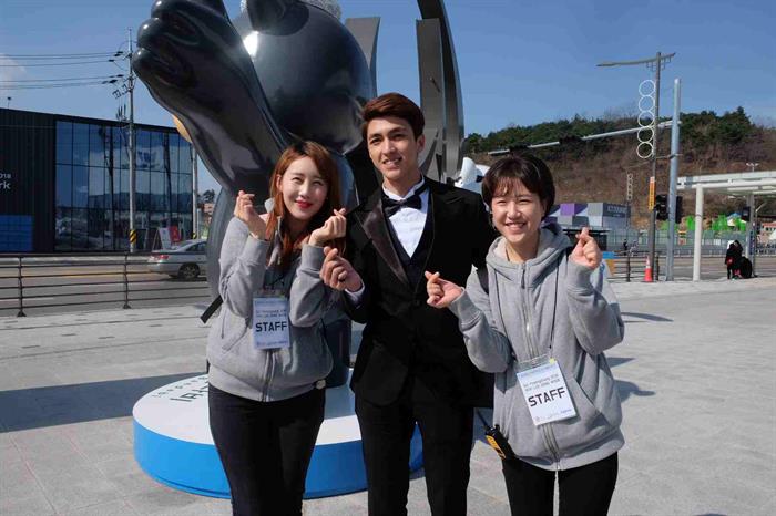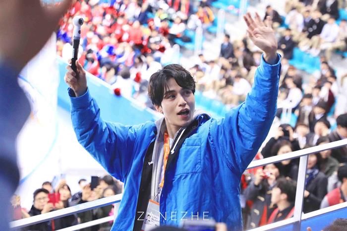 Sau buổi fan meeting kéo dài gần 2 tiếng, hai nghệ sĩ Việt Nam có dịp xem trận đấu khúc quân cầu trên băng giữa hai đội tuyển Paralympic của Nhật Bản và CH Czech. Lee Dong Wook cũng có mặt trên hàng ghế khán giả để cổ vũ cho các vận động viên khuyết tật. Anh liên tục quay xuống chào mọi người ngồi ở hàng ghế phía sau, trong đó có Văn Mai Hương, Bình An. Cả hai đã không giấu được cảm xúc thích thú bởi được nhìn Lee Dong Wook ở khoảng cách gần.