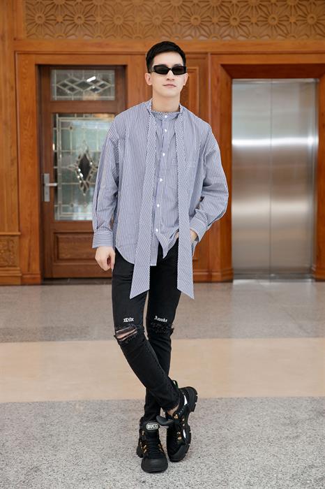 Về phía Võ Cảnh, anh "đốn tim"người đối diện bằng gương mặt điển trai, cùng phong cách thời trang cá tính nhưng không kém phần chỉn chu. Ca sĩ/diễn viên gốc Bình Định lựa chọn chiếc áo sơ mi từ nhà mốt Balenciaga, quần jeans Off-White, giày Gucci, phối với mắt kính ton-sur-ton. Anh hiện là một trong số ít nghệ sĩ nam chịu khó đầu tư cho mỗi lần xuất hiện.