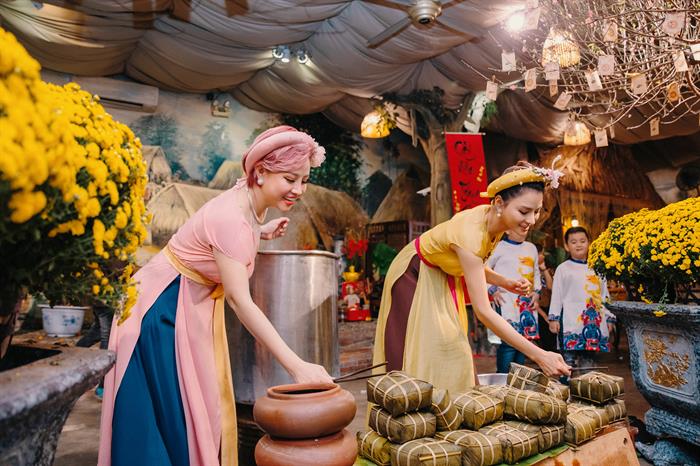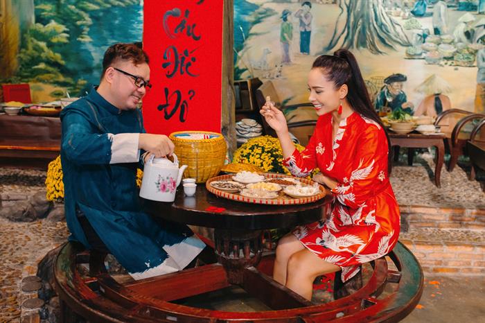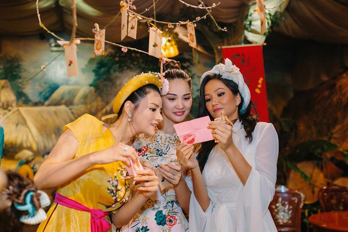 Các quan khách đều được Vũ Thu Phương gợi ý diện áo dài để làm tăng thêm không khí Tết, vừa rực rỡ lại không kém phần thanh lịch. Đây cũng là chi tiết phần nào tạo nên không khí ngày Xuân truyền thống. Vũ Thu Phương, H’Hen Niê, Khánh Vân cùng chung một khung ảnh khiến khán giả trầm trồ vì sự nhẹ nhàng, nữ tính, “mười phân vẹn mười”.