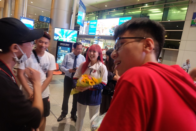 Tintuc - Mặc trời mưa lớn và lịch trình đến Việt Nam của ngôi sao Thái Lan bị trễ hơn so với dự định, thế nhưng nhiều fans hâm mộ vẫn miệt mài đợi chờ Jannine Weigel tại sân bay Tân Sơn Nhất.