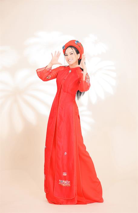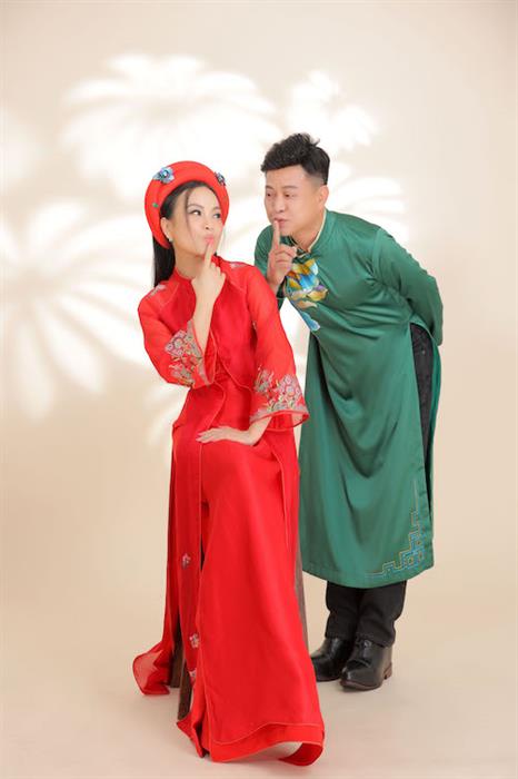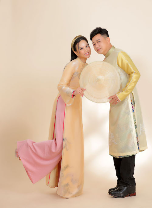 Cô dành hẳn một ngày để thực hiện bộ ảnh xuân với người tình âm nhạc một thời – ca sĩ Trần Sang.trong 1 thiết kế mới may riêng cho cô của nhà thiết kế áo dài Trần Thiện Khánh gửi từ Huế vô