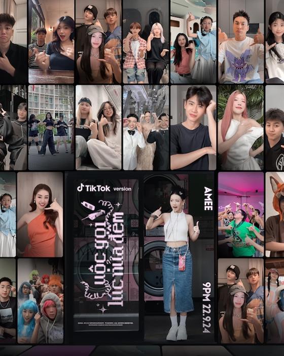 Trong MV ‘Cuộc gọi lúc nửa đêm’ phiên bản dọc, AMEE xuất hiện xinh đẹp, đáng yêu bên cạnh hàng loạt sao Việt như diễn viên Kiều Minh Tuấn, diễn viên Ninh Dương Lan Ngọc, ca sĩ Trang Pháp, Hoa hậu Nguyễn Trần Khánh Vân, Hoa hậu Nguyễn Lê Bảo Ngọc. Bộ đôi Ninh Dương Story – Ninh Anh Bùi và Nguyễn Tùng Dương cũng có mặt trong MV này với màn “bắt trend” khi diện vest lịch lãm từng nhận hàng trăm nghìn lượt yêu thích.