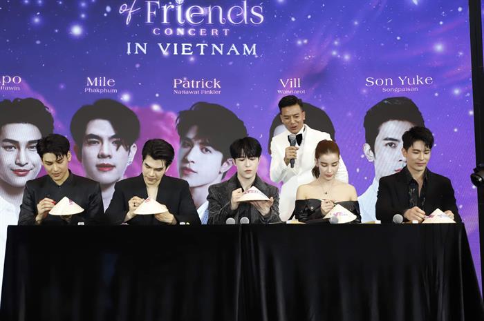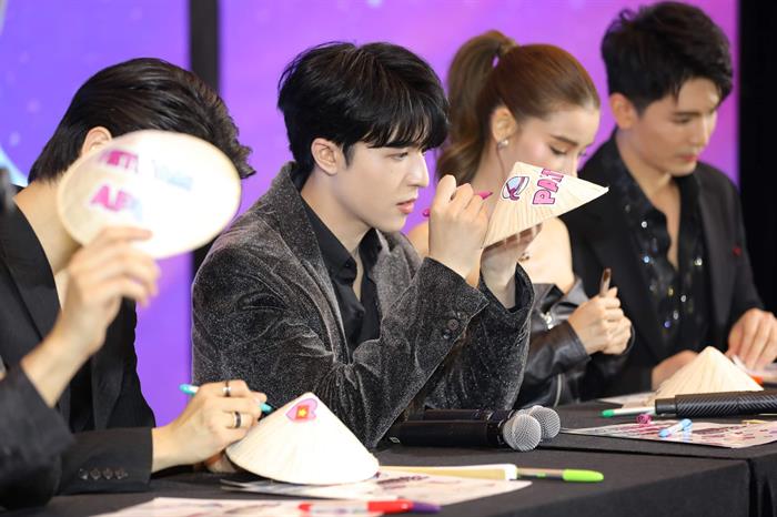 Không khí ngày càng nóng lên khi các nghệ sĩ giao lưu cùng khán giả có mặt. Patrick Nattawat, Son Yuke, Vill, Mile Phakphum và Apo Nattawin không chỉ khoe khả năng nói tiếng Việt cực chuẩn, dàn nam thần còn khoe vẻ điển trai, nụ cười tươi cuốn hút cùng loạt hành động đáng yêu như "bắn tim" khiến fan bấn loạn.
