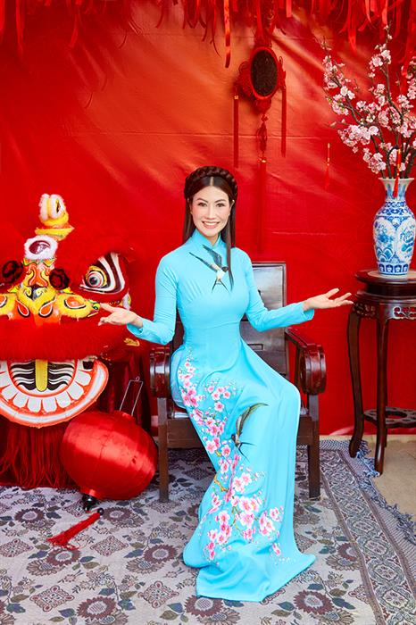 Chào đón Tết đang cận kề, Nữ giám đốc công ty thiết bị xe nâng hạ hàng hóa cùng NTK Brian Võ chọn Nhà Văn Hóa Thanh Niên với mai đào khoe sắc để tôn vinh triệt để chiếc áo dài.