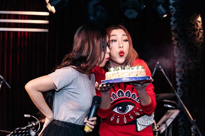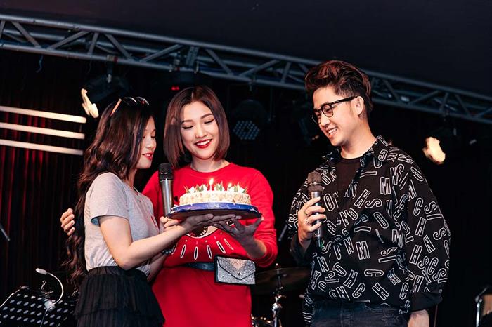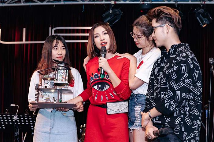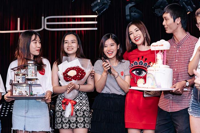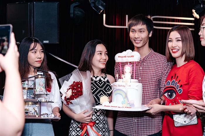 Buổi fan meeting kết thúc bằng màn chúc mừng sinh nhật xúc động khi gia đình gửi tặng Hoàng Oanh món quà bất ngờ là một đoạn clip tự thực hiện cùng bánh kem mừng tuổi mới khiến người đẹp bật khóc xúc động.