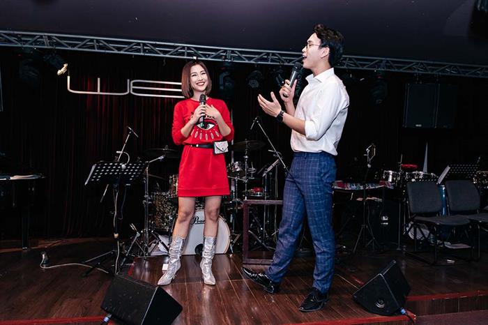 Đặc biệt, buổi fan meeting còn đánh dấu màn song ca cực kỳ ngọt ngào của Hoàng Oanh và Quang Bảo. Dù là bạn của nhau 17 năm nhưng đây là lần đầu tiên cặp đôi bạn thân này thể hiện khả năng ca hát cùng nhau trên sân khấu và trước nhiều khán giả.