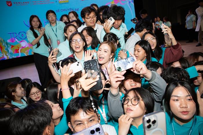 Hoàng Thùy Linh sẽ tiếp tục thực hiện những buổi gặp gỡ, giao lưu với các bạn học sinh – sinh viên tại các trường trong thời gian sắp tới, cụ thể là trong chiều 20/03 vừa qua, Linh cũng đã khởi động bằng một buổi gặp gỡ 1500 các bạn sinh viên tại trường Đại học Văn Lang – VLU. Ngay trong buổi gặp gỡ đầu tiên với các bạn sinh viên, Khóa luận tốt nghiệp “Audience Reception of Vietnamese Folklore Representation in Fairy Tale Music Videos of Hoàng Thùy Linh” của bạn Huỳnh Vĩnh Khang – cựu sinh viên khóa 25 ngành Quan hệ Công chúng (Giảng viên hướng dẫn: ThS. Quách Thuyên Nhã Uyên) cũng đã được giới thiệu đến với mọi người. Khóa luận tập trung phân tích yếu tố văn hóa thông qua 2 bài hát nổi tiếng của ca sĩ Hoàng Thùy Linh là Kẻ Cắp Gặp Bà Già và See Tình. Bạn Vĩnh Khang cũng đã xuất sắc nhận được học bổng 100% bậc Thạc sĩ tại Thái Lan sau khi tốt nghiệp. Đây vừa là một niềm vui cho cá nhân Huỳnh Vĩnh Khang nói riêng, và đây cũng chính là niềm hạnh phúc và tự hào của Hoàng Thùy Linh và những người yêu mến âm nhạc của Linh. Bởi không chỉ âm nhạc, mà những nét văn hóa dân tộc, màu sắc dân gian trong âm nhạc của Hoàng Thùy Linh đã phần nào len lỏi vào đời sống của các bạn trẻ một cách tự nhiên rất đỗi nhẹ nhàng, ngay cả trên giảng đường.