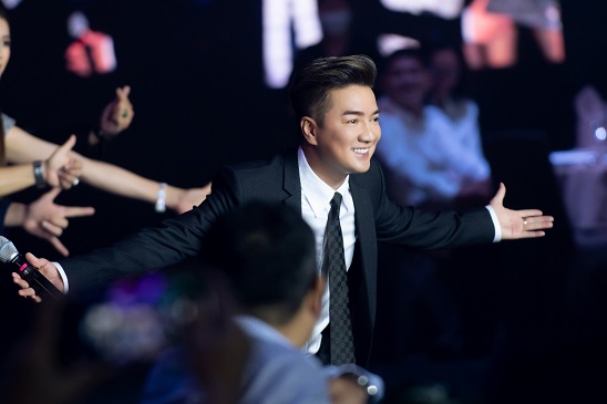 Phạm Đình Thái Ngân có mặt từ sớm để chúc mừng sư phụ, nam ca sĩ cũng là người sáng tác “Anh lo cho em hết” và tặng luôn cho Đàm Vĩnh Hưng.