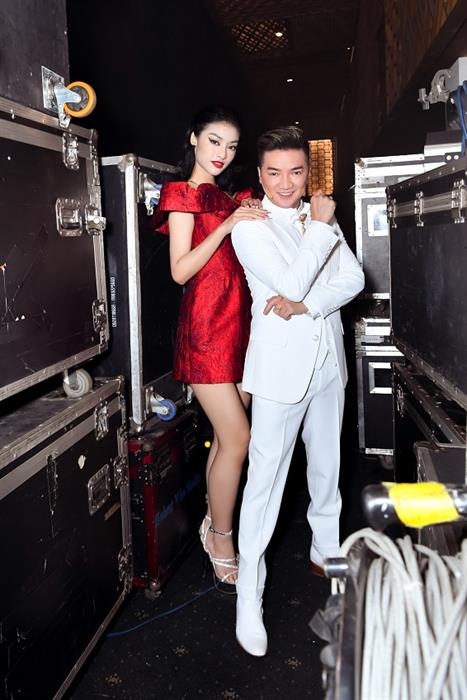 Á hậu Kiều Loan tranh thủ chụp hình trong hậu trường với Mr Đàm. Lona từng là khách mời góp mặt trong MV “Đừng gọi anh là anh trai” của Đàm Vĩnh Hưng.