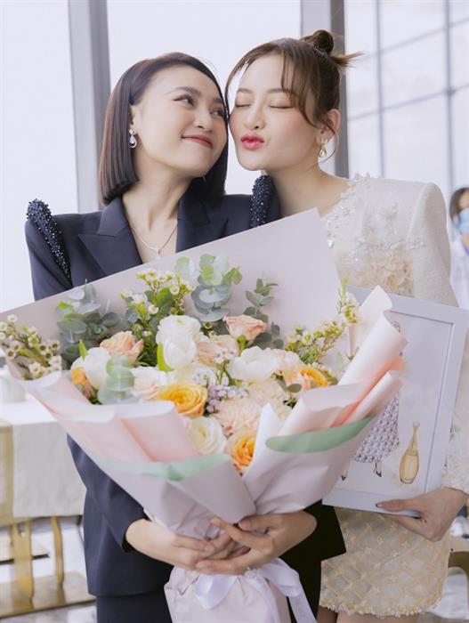 Vì là ngày quay cùng “Hội Chăn Chuối” gồm có Thoại Tiên, Thùy Anh, Phương Lan thế nên màn chúc mừng sinh nhật bất ngờ của Lan Ngọc tràn ngập tiếng cười. Sau khi đóng cùng nhau qua 2 phim điện ảnh thuộc vũ trụ Gái Già và bước sang Cô gái từ quá khứ, hội bạn này đã trở nên thân thiết thực sự với nhau từ phim đến cả ngoài đời thực.