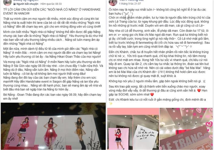 Sau sự kiện, trên fanpage của nhóm và khắp các diễn đàn, fan Hà Nội đã để lại nhiều bài viết review khá dài bày tỏ các cung bật cảm xúc, yêu thương xen lẫn tiếc nuối… khi được gặp gỡ, trò chuyện trực tiếp và nắm tay “người mình thương”. Có những cái nắm tay có thể không đủ dài nhưng chừng đó cũng đủ để các cô gái cảm nhận được tình thương fan dành cho mình mà cố gắng về sau.