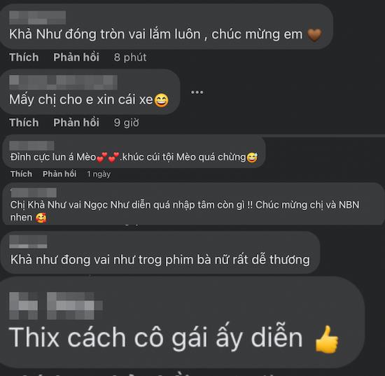 Khả Như cũng cho hay cô đọc hầu hết bình luận của khán giả về vai diễn Ngọc Như của mình và xem đây là các góp ý giúp bản thân hoàn thiện khả năng diễn xuất của mình hơn.