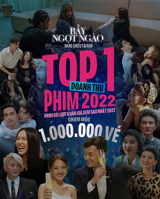 Tintuc - Sau 1 tháng ra mắt, phim điện ảnh Bẫy Ngọt Ngào gây tiếng vang và nhận được nhiều đánh giá cao của giới chuyên môn và khán giả. Đến nay phim đã đạt Top 1 doanh thu trong năm 2022 với hơn 1.000.000 vé được bán ra.