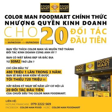 Tintuc - Color Man công bố chính thức mở nhượng quyền kinh doanh chuỗi siêu thị mini cho 20 đối tác đầu tiên đăng ký từ ngày 20/8 đến ngày 5/9/2020.