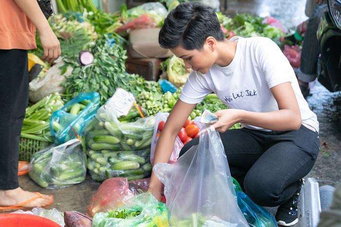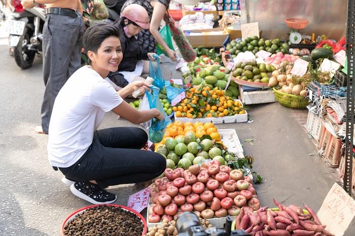 Dù đã đăng quang hoa hậu, nhưng H’Hen Niê vẫn giữ thói quen tự đi chợ để lựa chọn thực phẩm tươi, sạch. Cô bật mí chợ Rạch Ông (Quận 8) là địa điểm quen thuộc của mình khi còn là sinh viên, cũng như khi đi làm người mẫu. Chính vì vậy, nhiều tiểu thương ở chợ đã nhận ra ngay “khách hàng ruột” của mình khi cô vừa bước vào chợ. Sự thoải mái, thân thiện và gần gũi giữa H’Hen Niê và các tiểu thương được thể hiện qua ánh mắt, nụ cười, cách đối đáp và sự chào đón của tiểu thương dành cho H’Hen Niê. Có người còn chọc “sao không cho chị làm vốn” sau khi nghe cô nói đem hết tiền thưởng đi làm từ thiện. H’Hen Niê hồn nhiên khoe “hồi xưa hay mua khoai lang chỗ chị, mỗi lần mua là 3 ký, 5 ký nhưng hồi đó làm người mẫu, sợ tăng cân nên em ăn khoai lang, giờ em cần mập nên em mua đậu bắp”.![]()