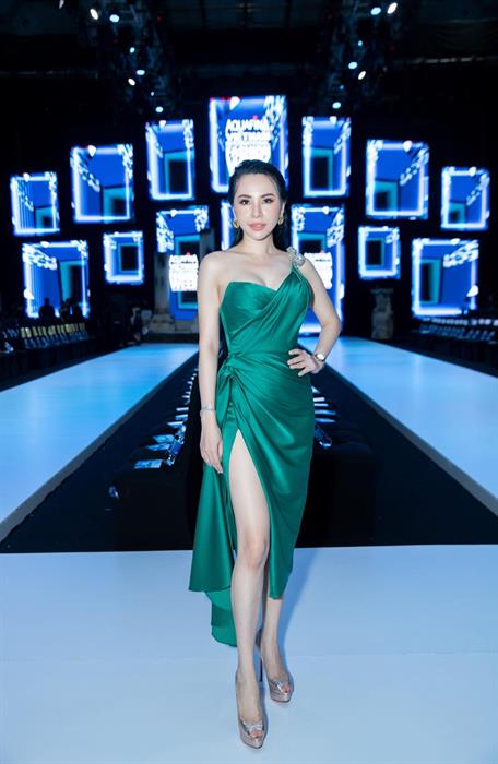 Là người “cầm cân nảy mực” trong đêm bán kết cuộc thi, Châu Ngọc Bích xuất hiện với hình ảnh chỉn chu và rạng rỡ. Cô lựa chọn thiết kế màu xanh tươi mới với những đường cắt xẻ táo bạo của NTK Lê Thanh Hoà. Bộ váy với phần chiết eo giúp nàng hậu khoe trọn 3 vòng thon gọn. Nước da trắng sứ ngọt ngào cũng giúp cô thêm phần quyến rũ và cuốn hút. Hoa hậu còn khá tinh tế khi kết hợp với phụ kiện hàng hiệu khiến tổng thể thêm phần hoàn mỹ.