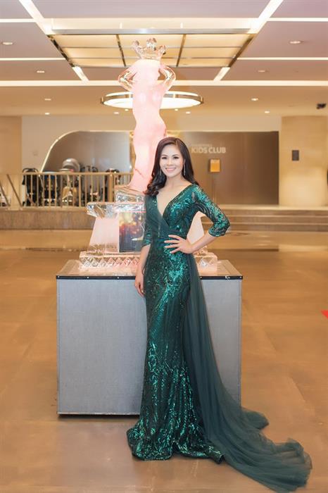 Diện một thiết kế đầm dạ hội đính kết cầu kỳ, Nguyễn Thị Thùy cho mọi người thấy được sự chỉn chu của cô khi xuất hiện trước đông đảo khán giả cũng như ống kính truyền thông. Cách make up nhẹ nhàng tôn lên những đường nét rất Việt trên gương mặt của Hoa hậu.