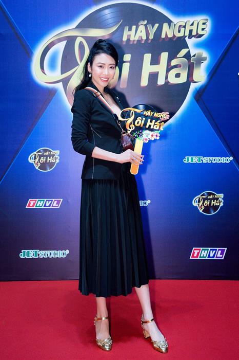 Tintuc - Hoa hậu – Nhà thiết kế Nhật Phượng diện vest đen huyền bí, gợi cảm xuất hiện bên cạnh dàn ca sĩ nữ tại họp báo Hãy Nghe Tôi Hát mùa thứ tư.