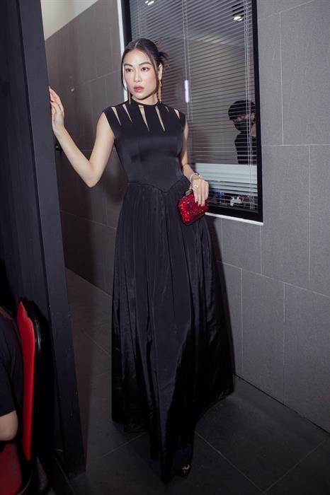 Trên thảm đỏ Tuần lễ thời trang quốc tế Việt Nam 2021, Tuyết Nga thu hút ống kính truyền thông với váy đen của thương hiệu Tracey. Thiết kế bó sát theo từng đường cong cơ thể giúp cô khoe trọn vóc dáng gợi cảm, ba vòng hoàn hảo. Phần cắt xẻ độc đáo của trang phục đem đến cảm giác mới lạ, tôn lên vòng một căng tràn sức sống của mỹ nhân sinh năm 1991.