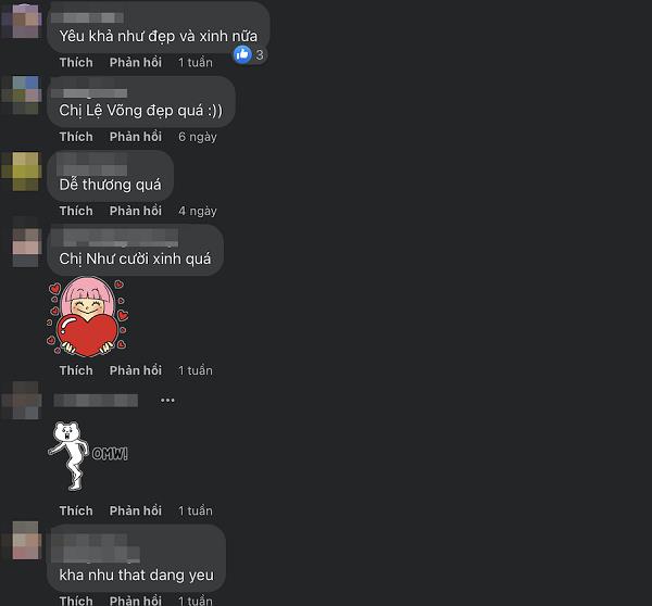 Nhiều khán giả phấn khích khen ngợi nữ nghệ sĩ: “Khả Như dễ thương quá à”, “Cưng Khả Như ghê”, “Chị Mèo đáng yêu”, “Yêu chị Như, đẹp và xinh”, “Mê chị Khả Như quá à, vừa duyên vừa dễ thương”, “Thích Khả Như lắm, càng xem chị càng ghiền”…