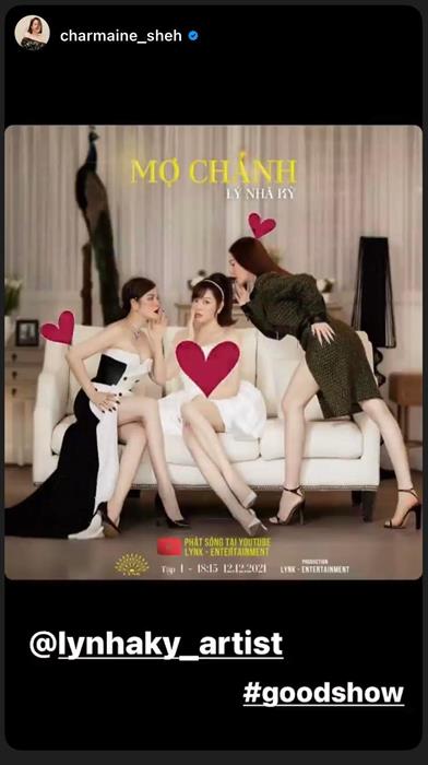 Chiều 16/12, minh tinh Hong Kong Xa Thi Mạn chọn poster talkshow Trà chiều cùng “mợ chảnh” Lý Nhã Kỳ để đăng tải trên trang cá nhân của mình nhằm quảng bá rộng rãi cho show. Người đẹp Diên Hy Công Lược không quên đính kèm các biểu tượng hình trái tim nhấp nháy. Hành động này chứng minh Xa Thi Mạn luôn follow và ủng hộ mọi hoạt động của Lý Nhã Kỳ và đặc biệt theo dõi các tập trong talkshow “Mợ Chảnh”.