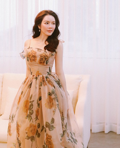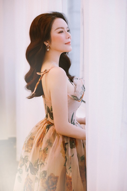 Cô lựa chọn cho mình chiếc váy hoa đơn giản, kết hợp cùng kiểu tóc uốn nhẹ giúp hình ảnh trở nên ngọt ngào nhưng không kém phần quyến rũ, sang trọng.