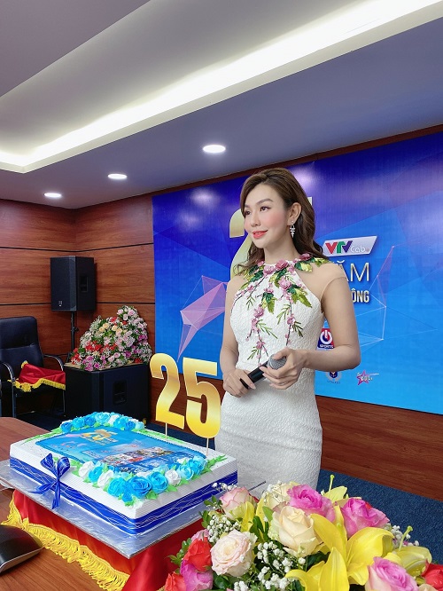 Vẫn với thần thái tự tin, chuyên nghiệp thường gặp, cô nàng nổi bần bật và là cầu nối cảm xúc khi liên tiếp nêu tên các dấu ấn, thành tích của toàn thể nhân viên nhà đài đã cùng nhau gặt hái được trong 25 năm qua.