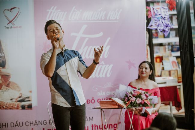 Đến tham dự buổi ra mắt sách có sự tham gia của ca sĩ Đức Tuấn, vốn là một giọng ca do chính MC Quỳnh Hương “phát hiện” ra, bởi lần đầu anh diễn ở Thay lời muốn nói cũng chính là lần đầu tiên anh lên sóng truyền hình, khi đó là vào năm 2000, anh vẫn còn là một cậu sinh viên. Đầy tâm trạng gợi nhớ, ca sĩ Đức Tuấn chia sẻ: “Ngày hôm nay đến đây, Đức Tuấn có cảm giác như trở về thanh xuân, khi đó Tuấn chỉ mới có 19 tuổi, và xin giữ suốt buổi hôm nay Tuấn chỉ như 19 tuổi thôi”. Với tâm trạng đó, anh gửi đến khán giả hai ca khúc đầy tình cảm về tình yêu là Tình ca phố (Quốc Bảo) và Chuyện một tình yêu (Trần Thái Nguyên). Anh cũng thừa nhận rằng, càng về chặng thời gian sau này, bản thân anh cảm nhận tình yêu càng trong veo hơn bao giờ hết.