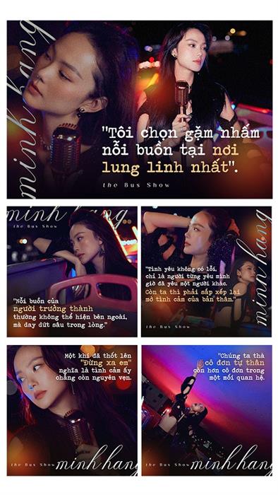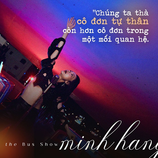 Không có những lời lẽ “đao to búa lớn”, Minh Hằng chỉ đơn giản nói lên nỗi lòng của mình qua từng giai đoạn cuộc sống, tình cảm lẫn sự nghiệp âm nhạc. “Tôi chọn gặm nhấm nỗi buồn tại nơi lung linh nhất”, người đẹp 8X giải bày trước khi cất tiếng hát giữa bầu trời đêm Sài thành hoa lệ trong “BUS SHOW”, khiến fan bùi ngùi cảm xúc.