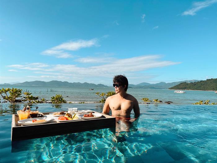 Người hâm mộ có thể thấy Nathan Lee chỉ có duy nhất một mình tại một khu nghỉ dưỡng sang trọng với bể bơi vô cực nhìn thẳng ra vịnh biển trong xanh, một khay điểm tâm được thả giữa làn nước trong xanh - tất cả tạo nên một bức tranh tổng thể đầy thư thái, đúng nghĩa một “thiên đường nhiệt đới”.