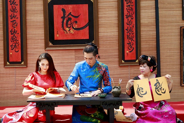 Tại đây, bạn còn có thể mua tìm mua được những bức tranh thư pháp, phong bao lì xì có chữ thư pháp độc đáo, vòng tay – chuỗi hạt xinh xắn, trái cây chưng Tết có khắc chữ thư pháp, bánh mứt và thực phẩm Tết… Ngoài ra, Phố chữ Văn Lang cũng có hẳn gian hàng cho thuê áo dài Tết để bạn thoả sức chụp ảnh, checkin.