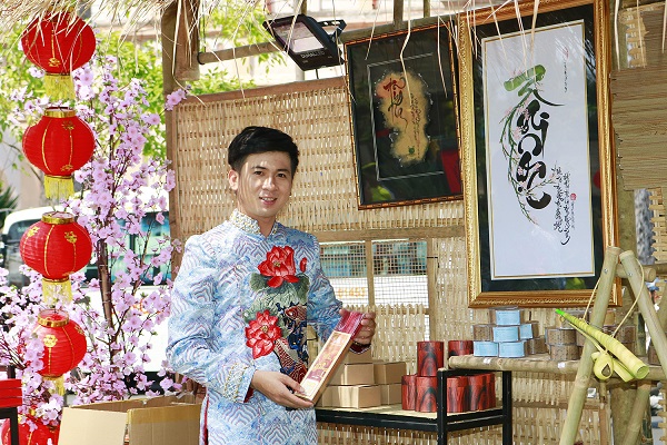 MC Hoài Ngô bên gian hàng trầm hương do anh và danh hài Hoài Linh mở tại phố chữ.
