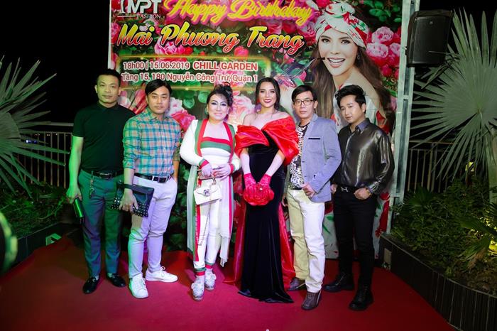 NTK Mai Phương Trang tạo nên phong cách gợi cảm, chỉn chu hơn khi chọn layout trang điểm đỏ nồng cháy, tóc búi thấp với lối uống sóng mái nhẹ nhàng thêm quyền lực, sang chảnh hơn. Trong bữa tiệc sinh nhật, đã có rất nhiều những khách mời là hoa - á hậu, nam - á vương cùng rất nhiều các doanh nhân thành đạt tới chung vui cùng người đẹp.