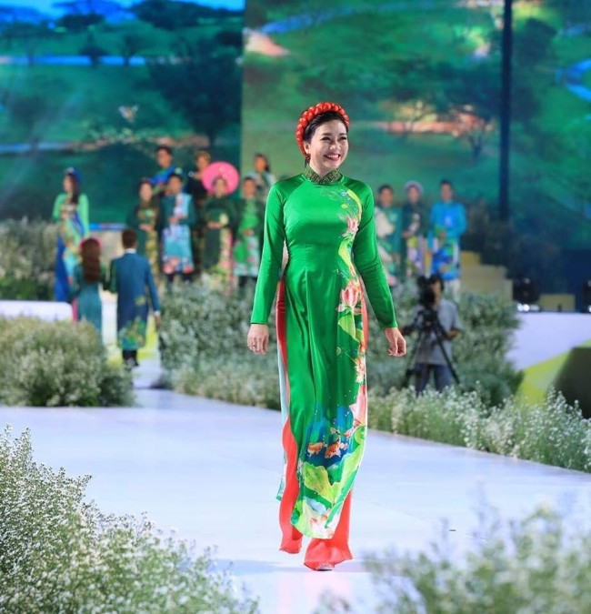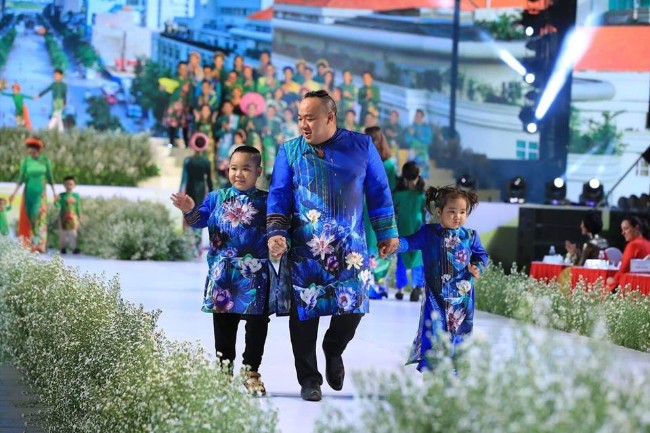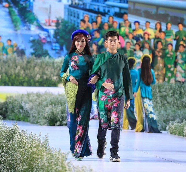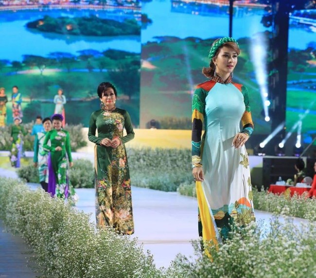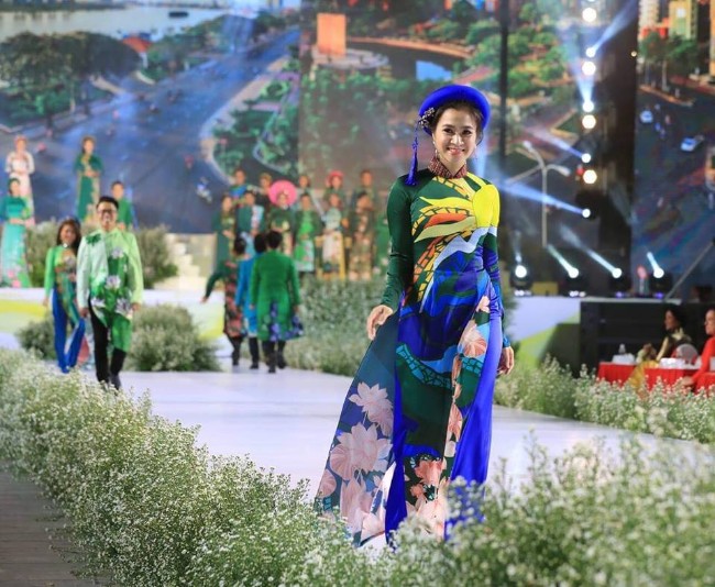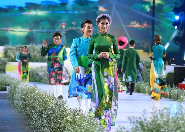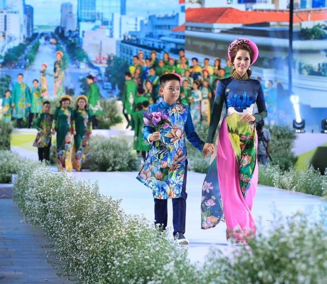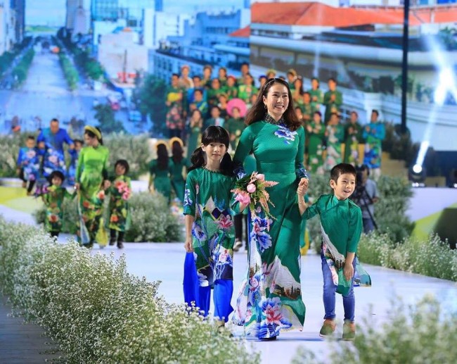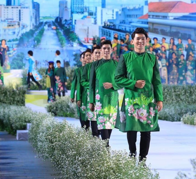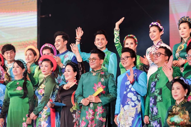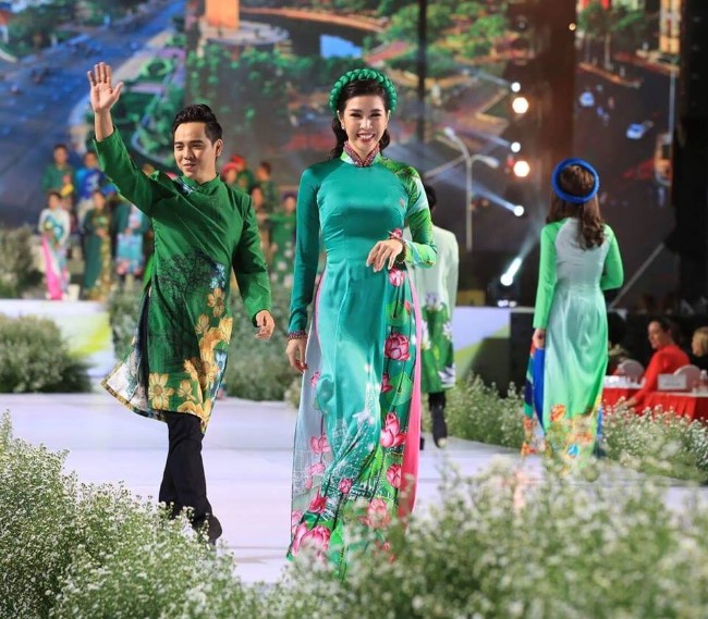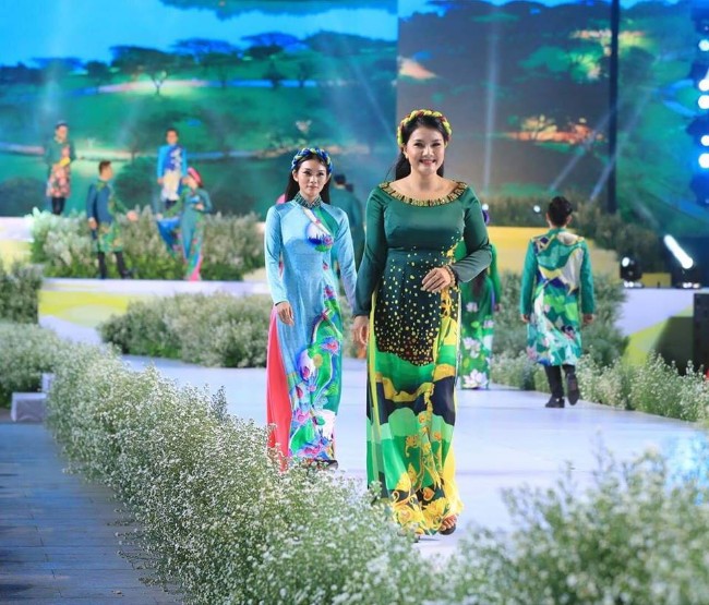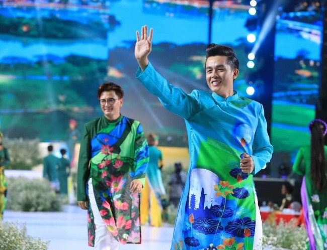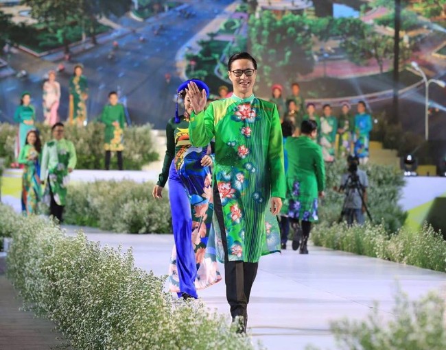 Lần đầu tiên, 90 nghệ sỹ duyên dáng tự tin sải bước trên sàn catwalk trên sân khấu của một vùng đất phương Nam rực rỡ nắng vàng, ấm áp tình người và giao hòa cùng thiên nhiên qua bộ sưu tập Áo dài mang thông điệp Thành phố xanh của Nhà thiết kế Việt Hùng.