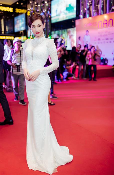 Tintuc - Tối 8/1, Quỳnh Chi xuất hiện xinh đẹp rạng rỡ tại buổi họp báo ra mắt phim điện ảnh “Ở đây có nắng”.