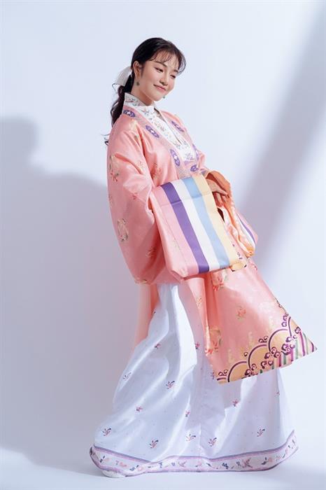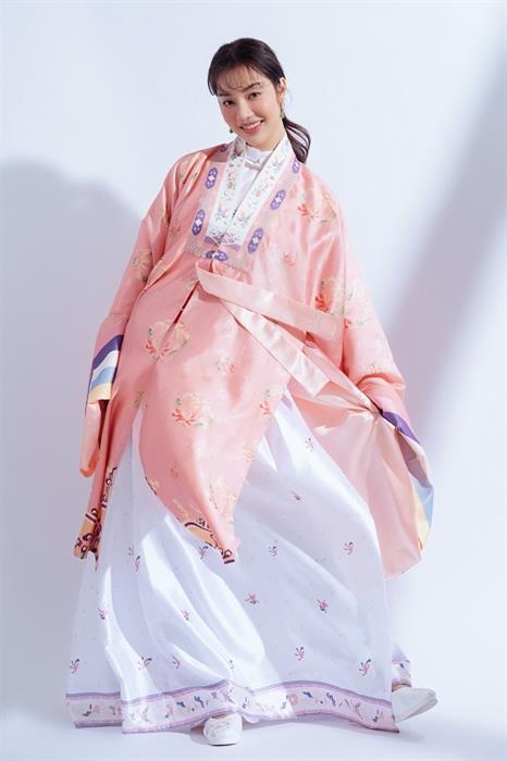 Cuối cùng là set Nhật Bình, dựa trên phom dáng của áo mệnh phụ và phi tần thời Nguyễn của Huế. Đặc biệt, để phù hợp với phong cách của Hoàng Duyên, thiết kế set Nhật Bình còn mang hình ảnh hoa sen – loài hoa cao quý thể hiện văn hóa truyền thống Việt.