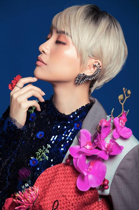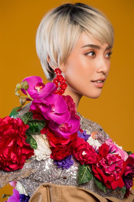 Đây dường như là một bước tiến tiếp theo của Tiêu Châu Như Quỳnh trong “mốt” lăng-xê hình ảnh của những đoá hoa. Nếu như khán giả đã từng ấn tượng với bộ mẫu “bình hoa di động”của Tiêu Châu Như Quỳnh trong buổi họp báo ra mắt Cặp Đôi Hoàn Hảo 2017 hay bộ trang phục lấy ý tưởng từ đoá hoa Quỳnh “phát sáng” của nhà thiết kế Nguyễn Tiến Truyển gần đây ắt sẽ một lần nữa bất ngờ với những hình ảnh mới này của cô nàng. Thay vì một mái tóc dài quyến rũ thường ngày, cô cũng đã quyết định “lột xác” thử một lần nữa với mái tóc ngắn màu bạch kim. Hy vọng với sự thử nghiệm thú vị này của cô nàng sẽ làm khán giả thích thú.