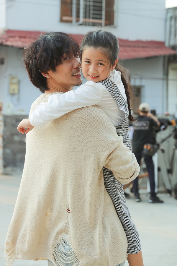 Theo Tuấn Trần, bộ ảnh được thực hiện tình cờ ngay trên phim trường. Sau những giây phút diễn xuất, cặp đôi dành thời gian cho những shoot ảnh theo phong cách ngẫu hứng, đời thường. Cả 2 diện trang phục đôi, thoải mái tạo dáng trước ống kính với loạt biểu cảm đáng yêu. Trong khi Ngân Chi vừa làm nũng, trêu đùa, Tuấn Trần cũng trông như “ông bố trẻ” khi tỏ ra dỗ dành và vui đùa cùng cô bé.