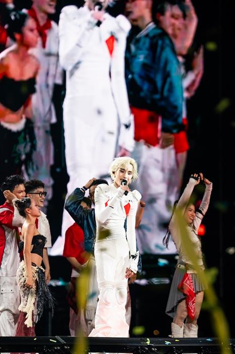 Không chỉ gây ấn tượng với giọng hát, Wren Evans còn khiến khán giả trầm trồ với những màn vũ đạo đầy ấn tượng. Nam ca sĩ hóa thân thành “nhạc trưởng” điều khiển dàn vũ công trong những màn trình diễn phức tạp. Visual của anh cũng là một điểm nhấn đáng chú ý khi xuất hiện như một “bạch mã hoàng tử” với trang phục toàn trắng, áo choàng trắng và mái tóc nhuộm bạch kim nổi bật.