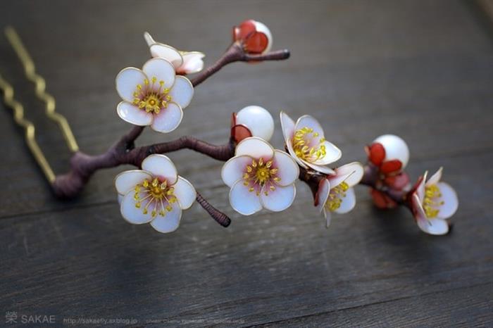 Đi cùng với một bộ kimono trang trọng, thanh lịch là chiếc trâm cài kanzashi tinh tế, tao nhã. Làn tóc của các cô dâu trong ngày cưới thường được bới cao, gọn gàng, điểm xuyết trên đó là những chiếc trâm cài xinh đẹp.