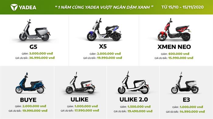 YADEA Việt Nam hiện đang triển khai chương trình “1 năm cùng YADEA vượt ngàn dặm xanh”, người dùng trên toàn quốc sẽ nhận được cơ hội sở hữu tất cả các mẫu xe máy điện YADEA có mức giá hấp dẫn lên tới 3 triệu đồng trên giá sản phẩm, từ ngày 15/10/2020 – 15/11/2020, với tổng giá trị ưu đãi ước tính trên 50 tỷ đồng.