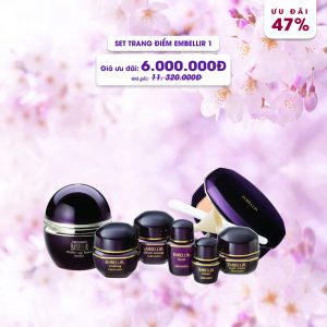 Vẻ đẹp căng tràn như đoá hoa mùa xuân khoe sắc, toả hương của người phụ nữ sẽ thêm son trẻ với set trang điểm Embellir. Ẩn chứa những chiết xuất quý báu tới từ Linh chi Đỏ và Linh chi Đen, set trang điểm Embellir đẩy lùi những dấu hiệu năm tháng in hằn trên gương mặt người phụ nữ, níu giữ và lấy lại vẻ đẹp xuân thì trước những bước đi của thời gian. Nếu ví vẻ đẹp của phái nữ với một đoá hoa thì đoá hoa mùa xuân son sắc sẽ hứa hẹn cho một mùa hạ tràn nhựa sống, một mùa thu e ấp, dịu dàng và một mùa đông vẫn vẹn sắc đậm hương.