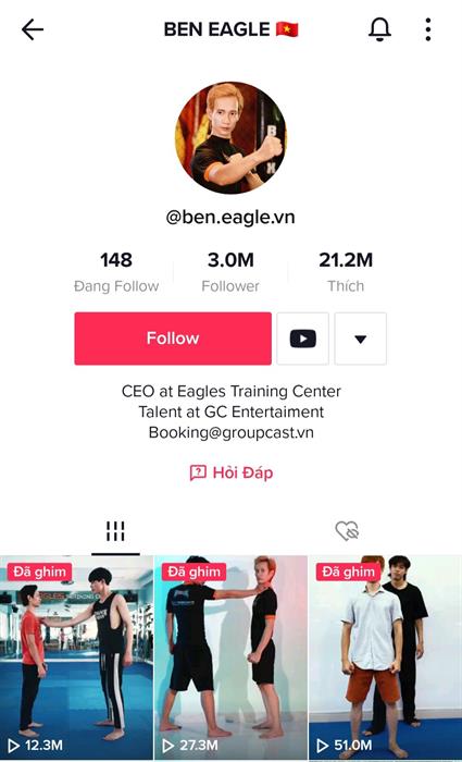 Mới đây, kênh Tiktok của chàng võ sư Ben Eagle đã cán mốc 3 triệu followers. Có thể nói, đây thực sự là một con số vô cùng ấn tượng mà nhiều nhà sáng tạo trên nền tảng thu hút giới trẻ này ao ước. Vậy điều gì khiến cho kênh TikTok của Ben Eagle khác biệt và trở thành kênh xu hướng triệu người theo dõi như hôm nay?