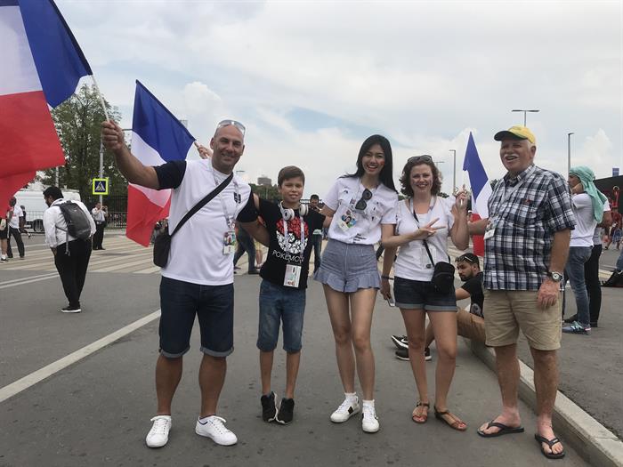 Tintuc - Trong suốt mùa giải, nàng hậu chưa một lần bình luận và bày tỏ sự hưởng ứng của mình với World Cup nhưng đến trận chung kết người đẹp đã xuất hiện ngay trên chính sân chủ nhà Nga để cổ vũ trận đấu.